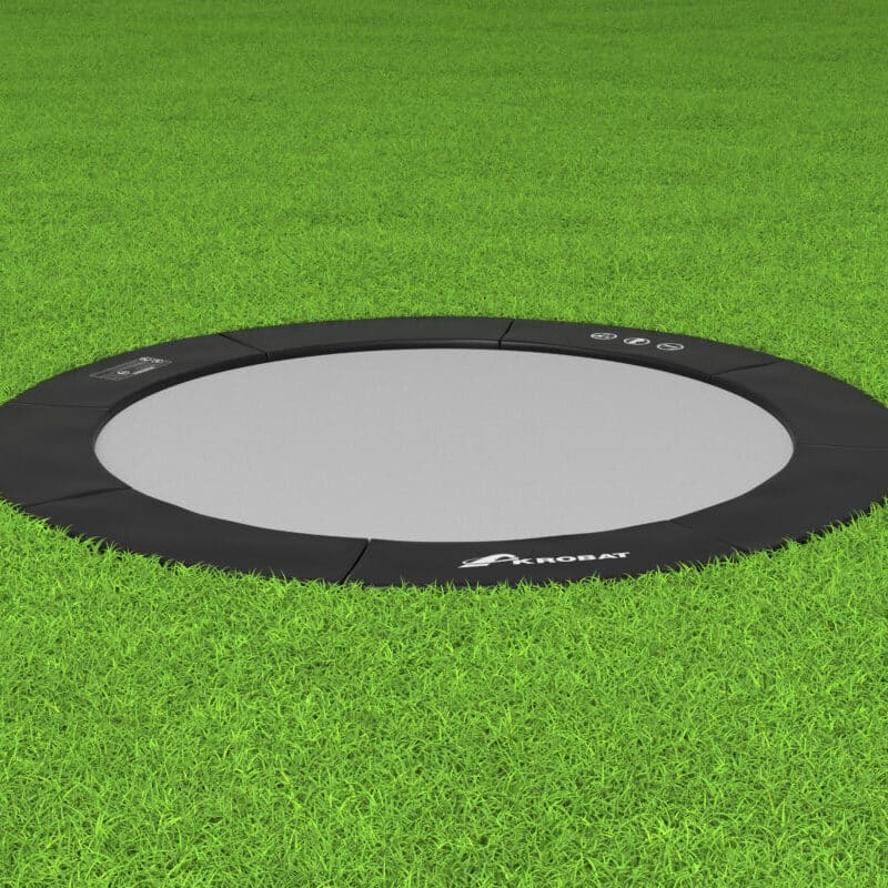In-ground trampolines are safer than traditional above-ground trampolines and can be used without a safety enclosure, but if your little ones are jumping, flipping, and trying out new tricks, you can invest in a safety enclosure that will keep them within the trampoline bounds.