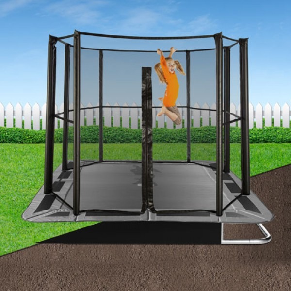 Our high quality In Ground trampoline kit 10ft x 6ft comes with everything you need for easy DIY installation in your own back yard.